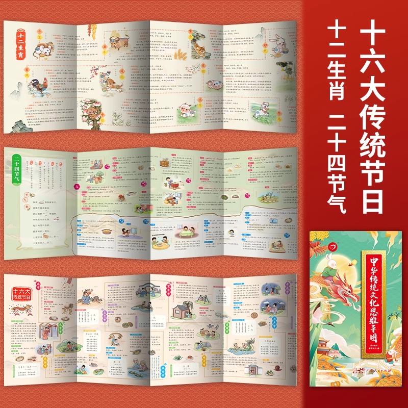 开心 传统节日24节气介绍解说漫画图解小学必背文学文化常识漫画拉页画册百科常识语文考点积累 中华传统文化思维导图画册漫画版