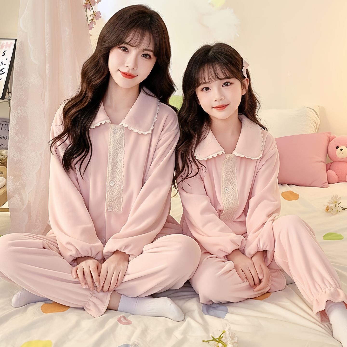 中大童女孩海岛绒网红家居服 珊瑚绒秋冬季 2025新款 亲子睡衣母女装