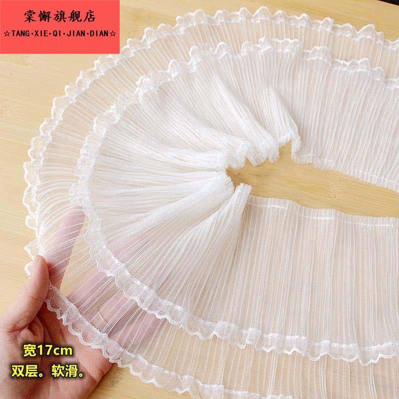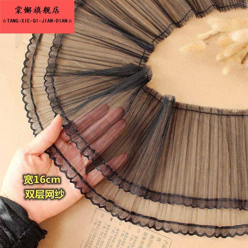饰10cm宽黑 子下摆服装 拼接裙边裤 边柔软雪纺百褶皱花边风琴蕾丝袖