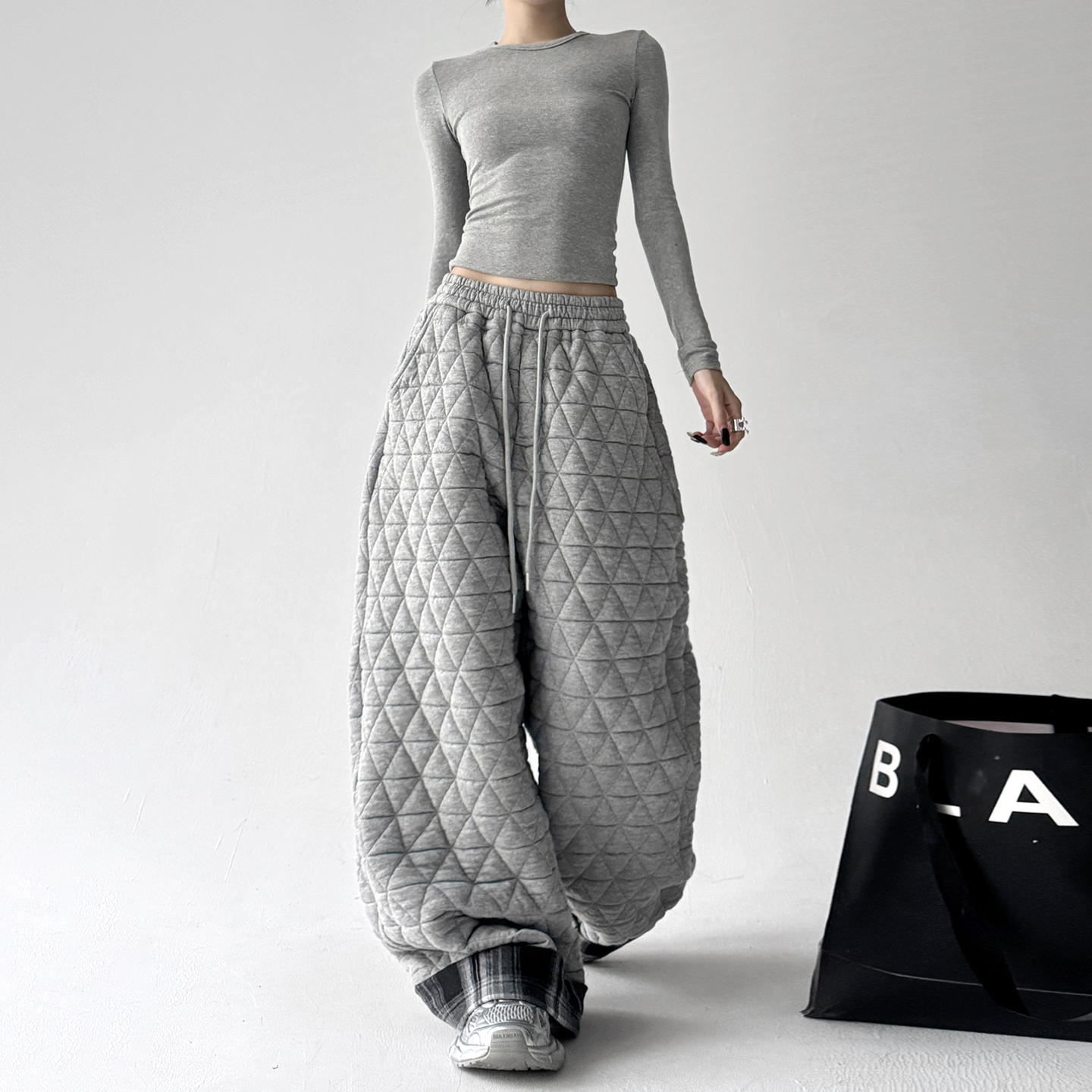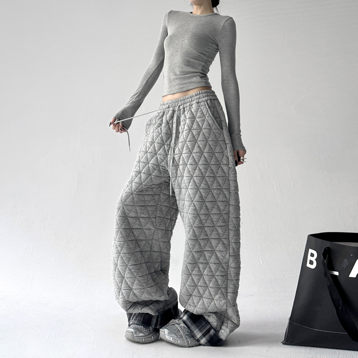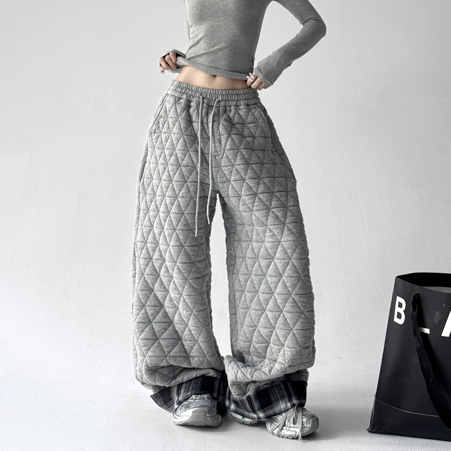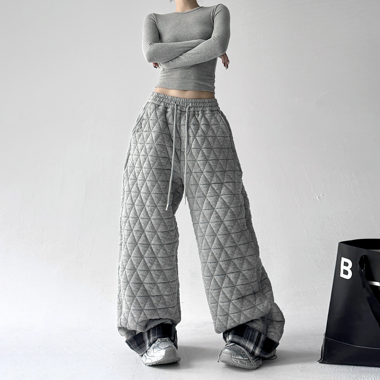 阔腿裤 长裤 女秋冬2025新款 拖地裤 加厚直筒裤 设计感菱格休闲裤