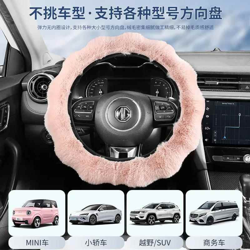 兔毛保暖加热毛绒女士可爱防滑通用把套 方向盘套冬季 韩版 2024新款