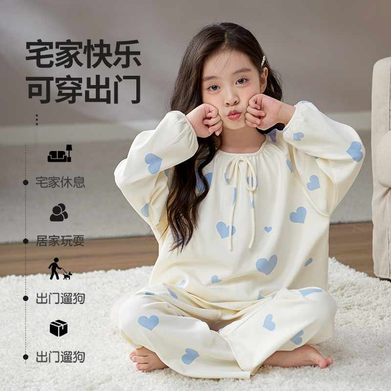 卡通甜美家居服套装 鲨小萌儿童睡衣春秋季 长裤 女童纯棉长袖 新款