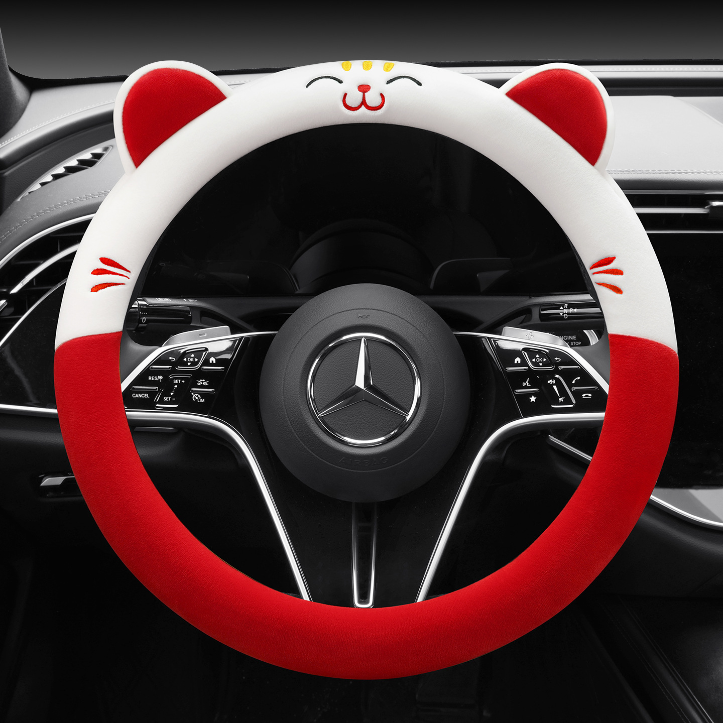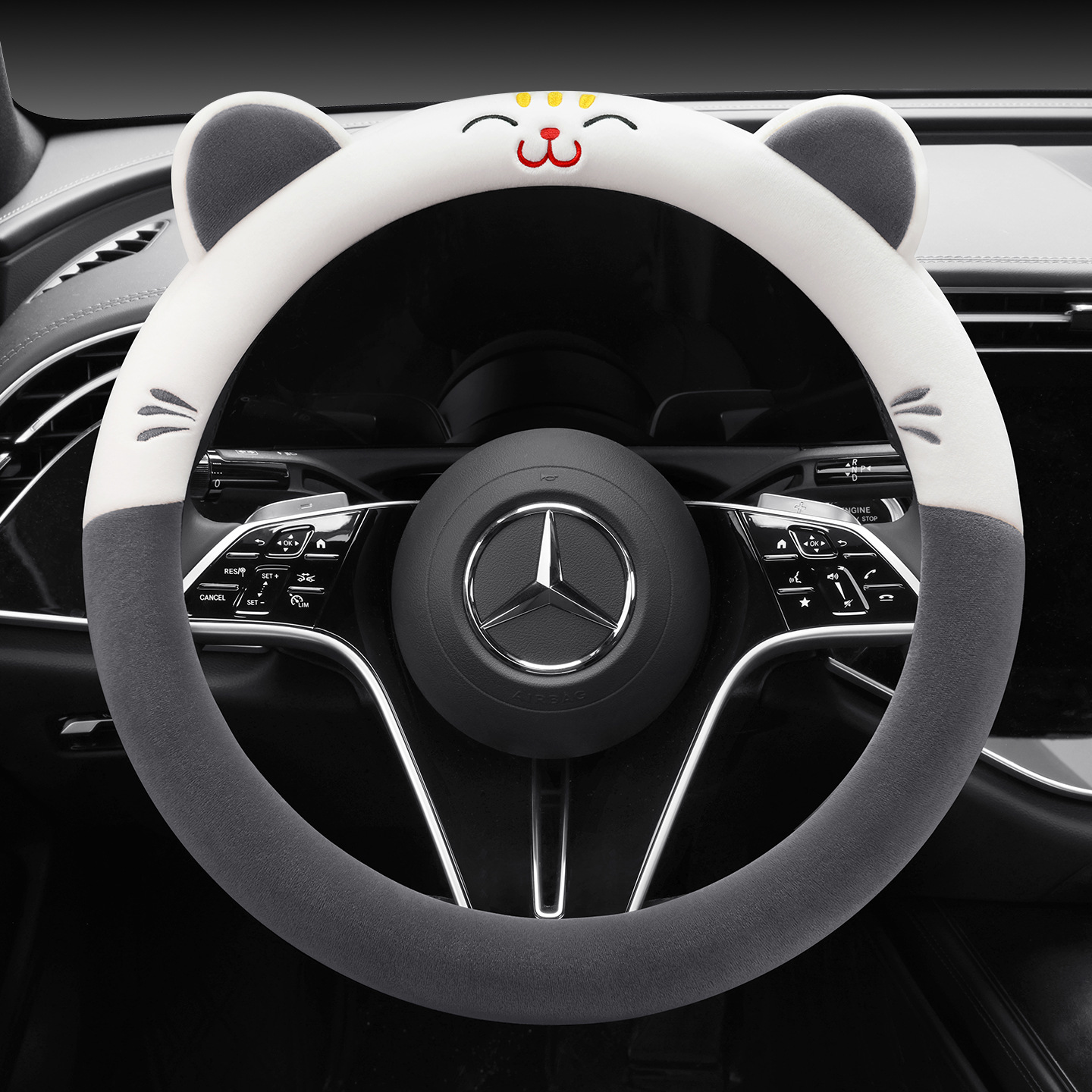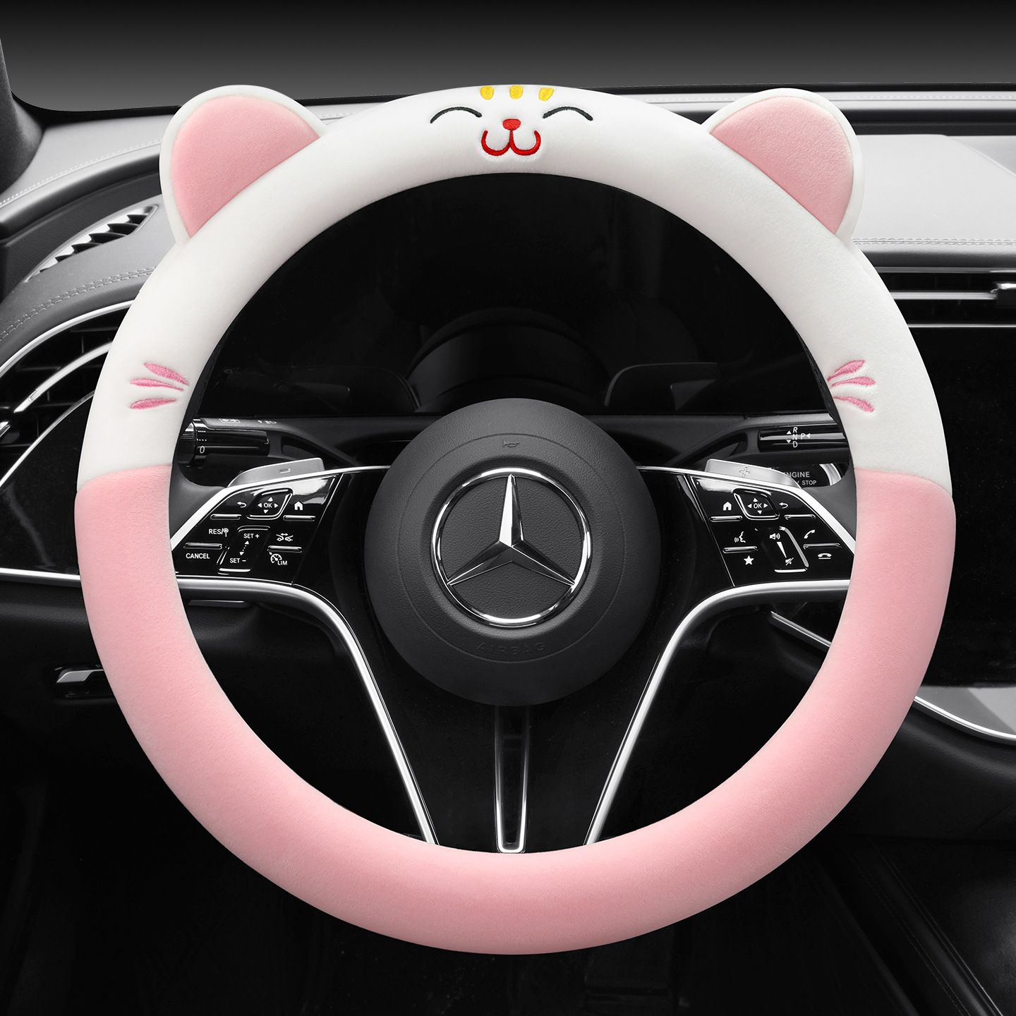 汽车方向盘套冬季 防滑把套 毛绒可爱猫男女神通用防滑透气保暖时尚