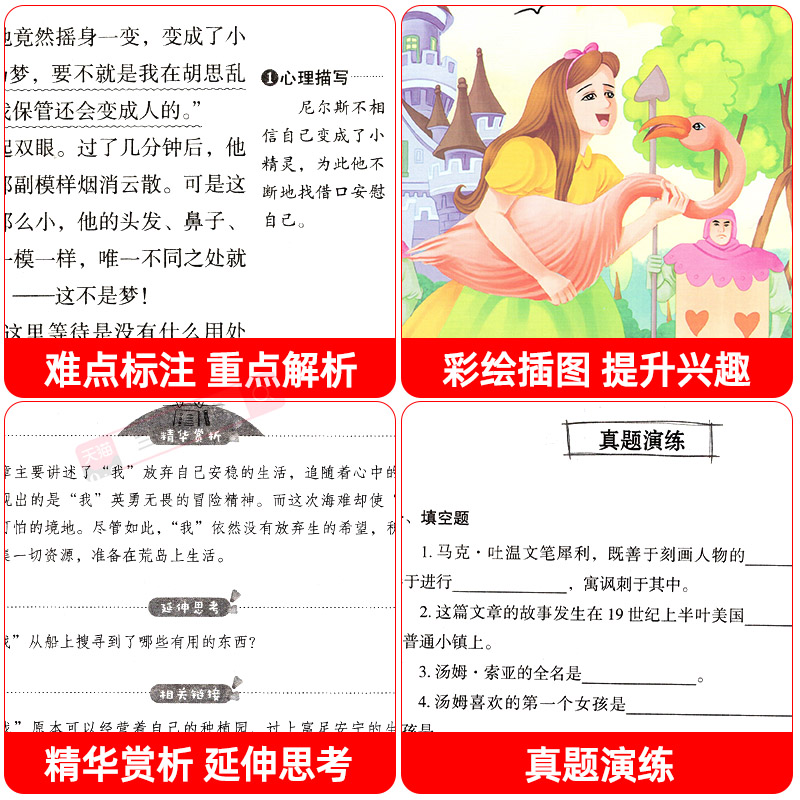 快乐读书吧六下书籍汤姆索亚历险记尼尔斯骑鹅旅行记必 课外书原著完整版 全套2册 鲁滨逊漂流记爱丽丝漫游奇境六年级下册阅读正版