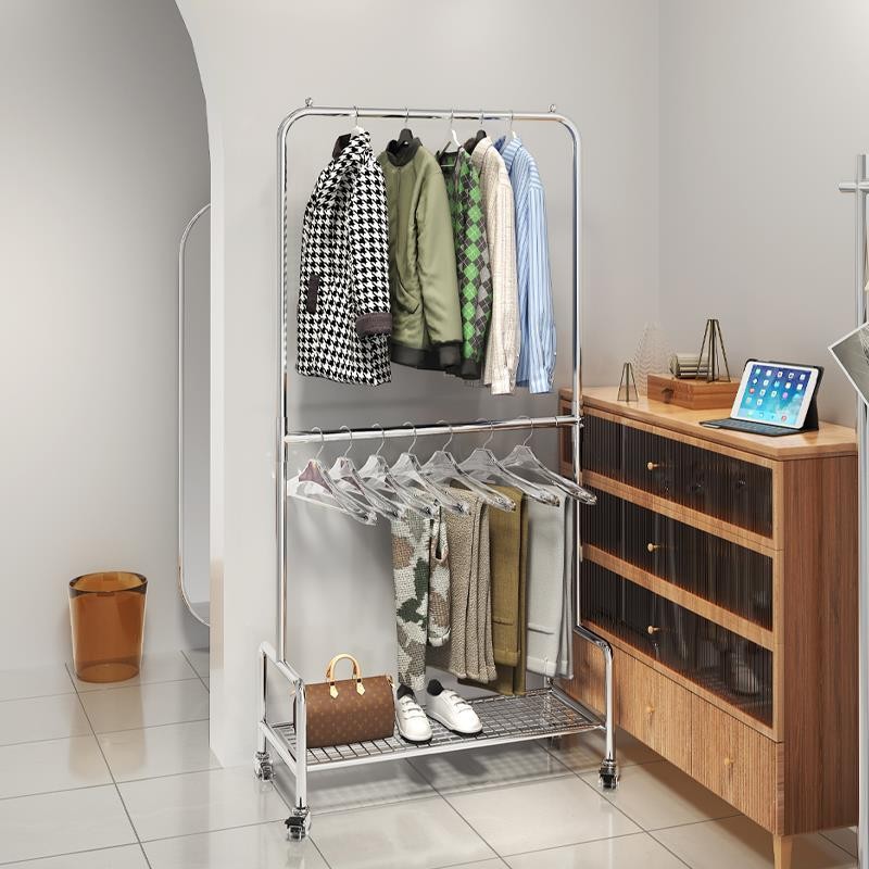 两层展示架上下升降双层落地可移动杆儿童装 店挂衣架 货架内衣服装