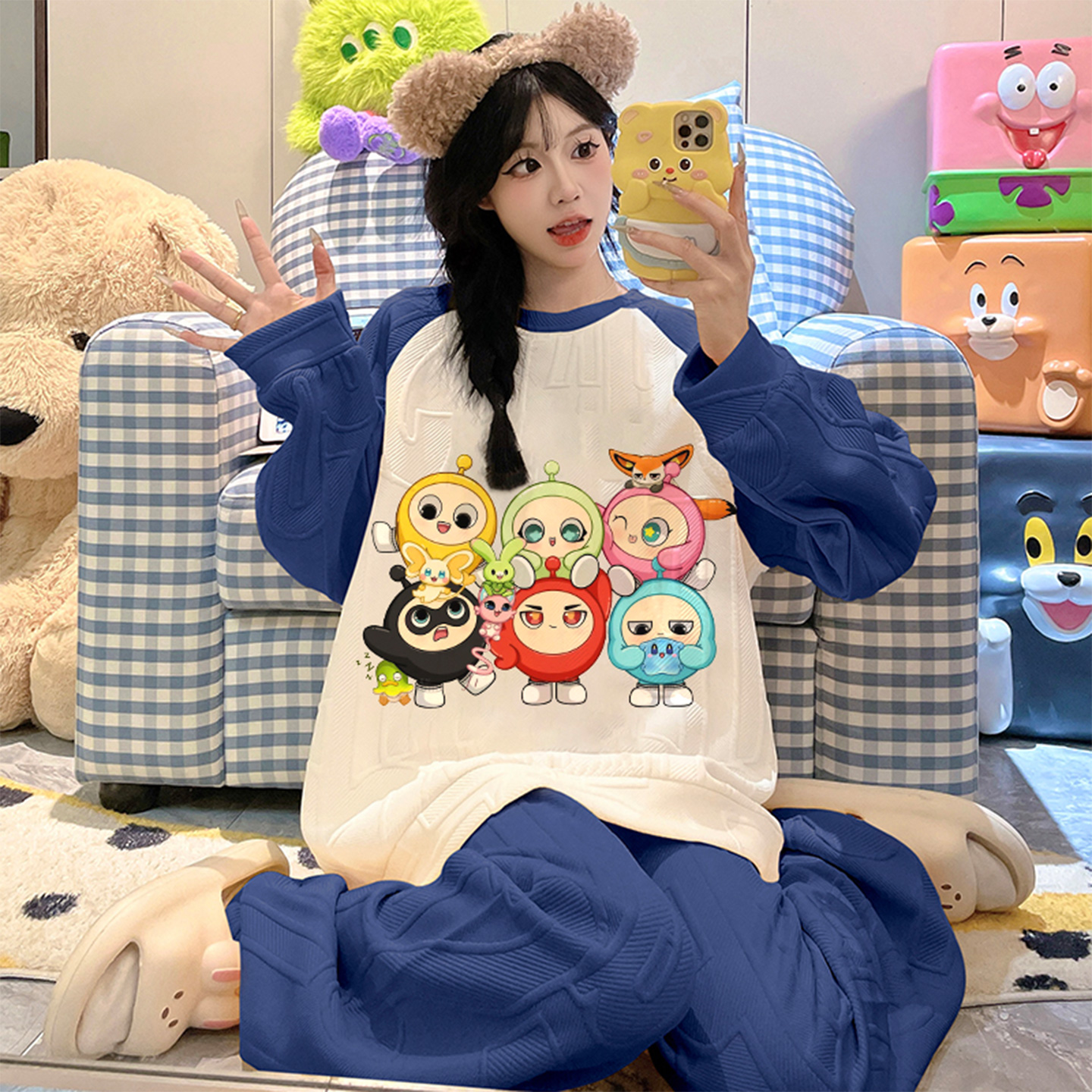 2025新款 可外穿家居服套装 女款 长裤 可爱长袖 自带胸垫睡衣女春秋款