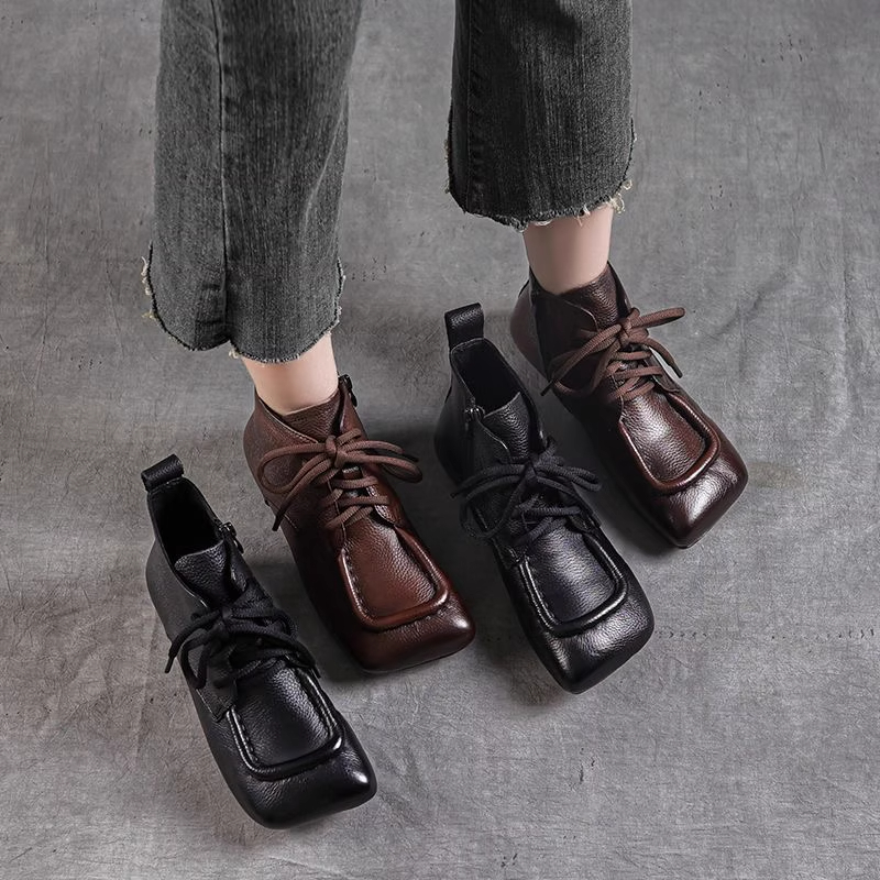 美拉德棕色靴子厚底黑色短靴 秋复古女鞋 英伦风马丁靴女款 2025新款