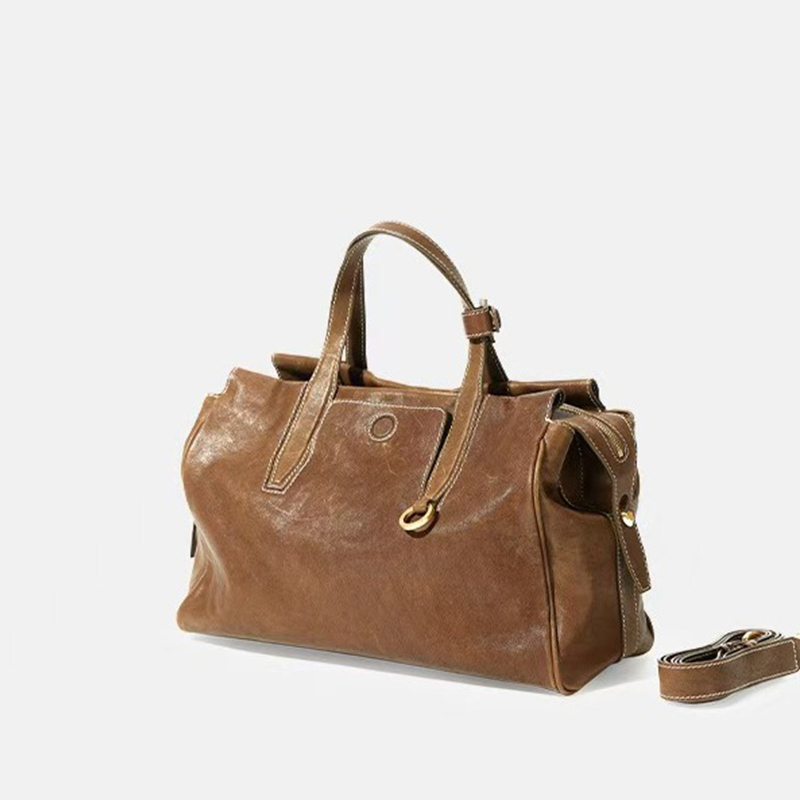 song大容量复古旅行包植鞣牛皮公文包单肩托特包软包 李娜同款
