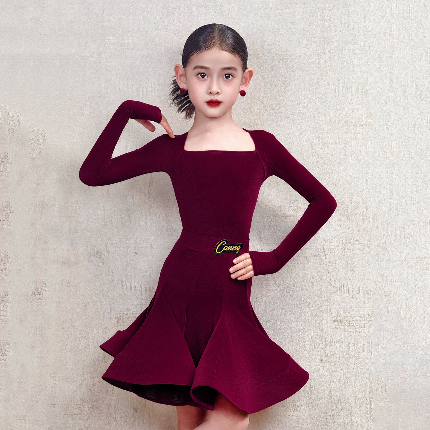CONNY康尼新款 拉丁舞服女表演出鱼骨裙子儿童标准规定比赛服长袖