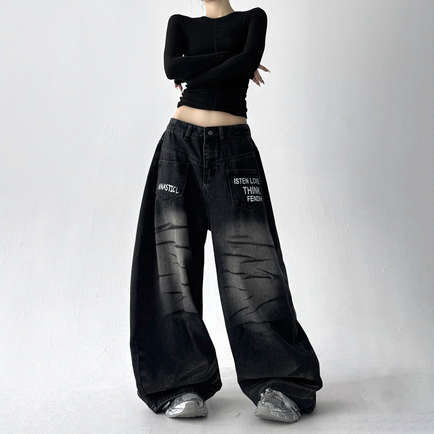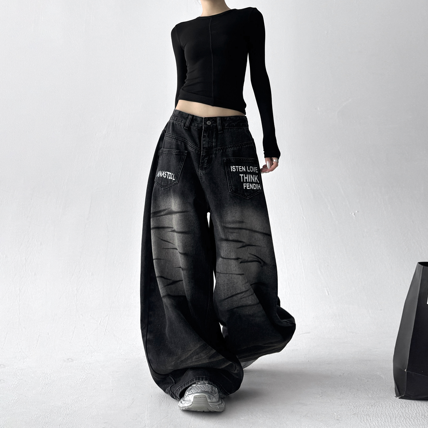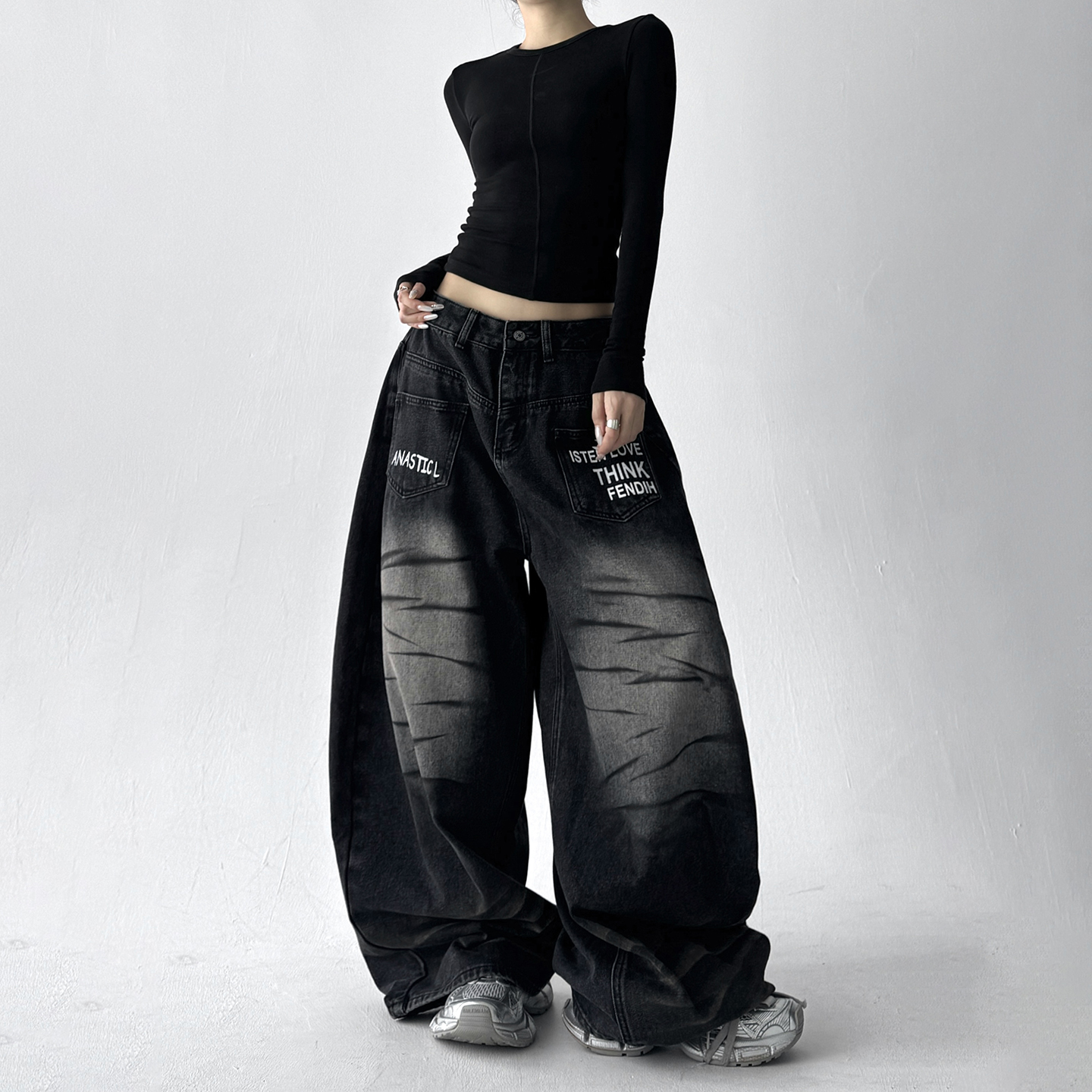 女 宽松复古磨白猫须中腰休闲弯刀香蕉阔腿牛仔裤 ONLY2025冬季 新款