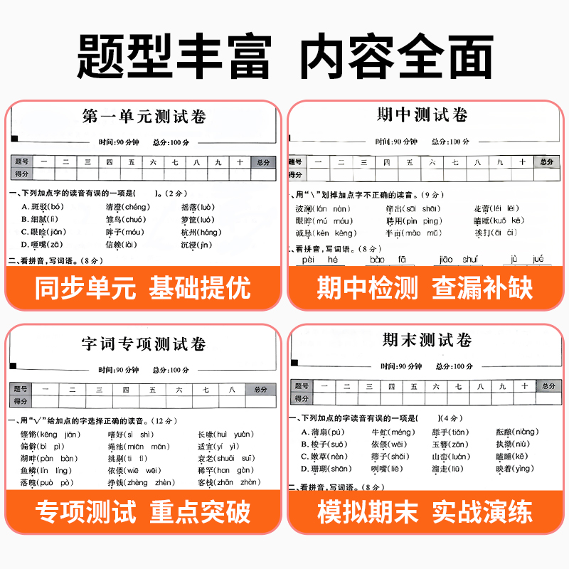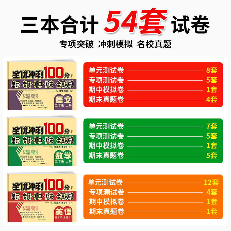 语文数学同步练习册小学卷子资料单元 全优冲刺100分测评卷人教部编版 期中期末考试卷练习题 五年级上下册试卷测试卷全套 2025新版