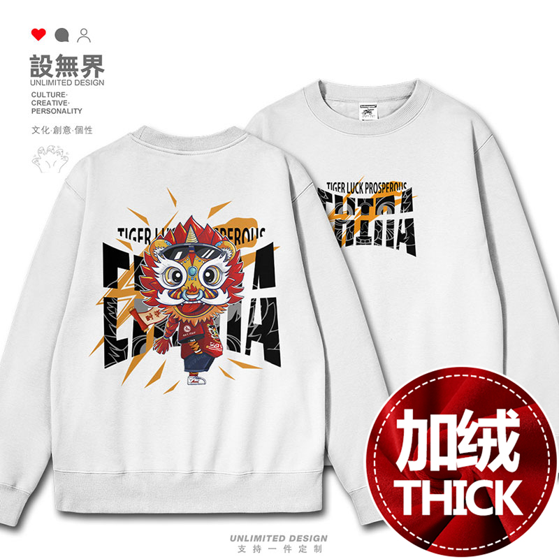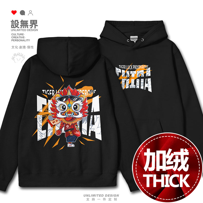 中国虎年潮流老虎醒狮虎运亨通连帽卫衣男女国潮帽衫 无界 0015设