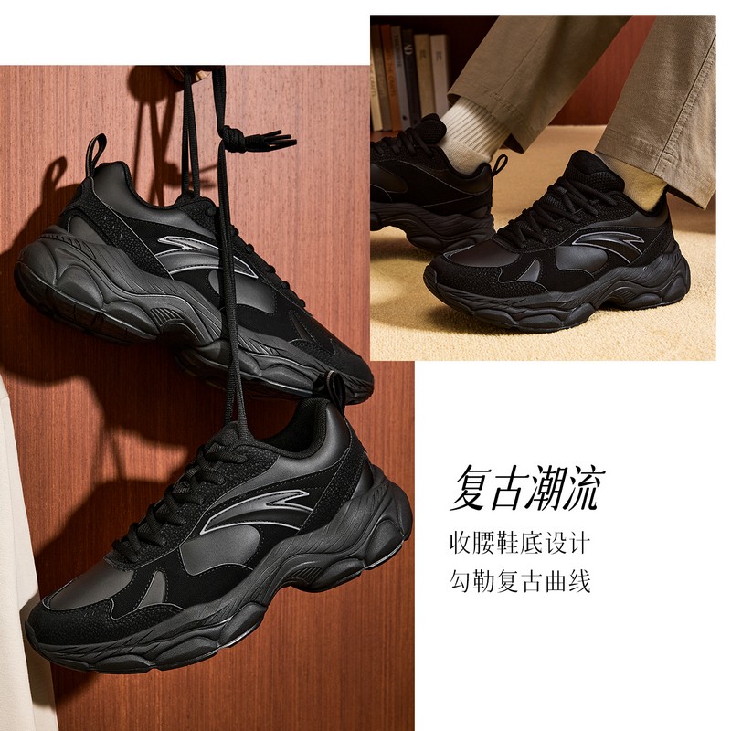 男鞋 新款 软底跑步鞋 网面透气休闲鞋 鸿星尔克运动鞋 黑色爸爸鞋 秋季