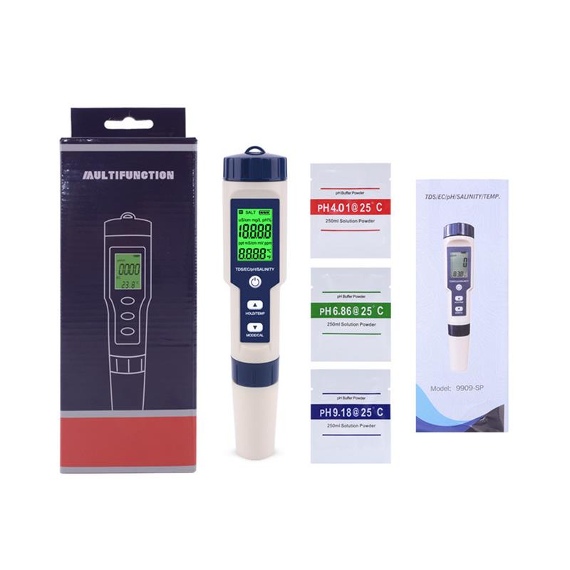 TDS SALT盐度淡海水鱼缸水质检测笔 9909A五合一检测仪PH