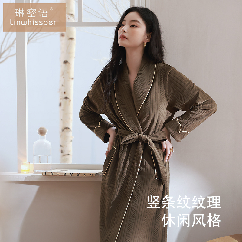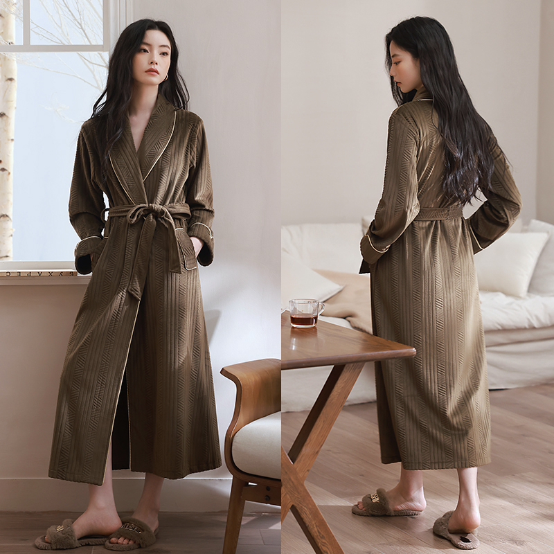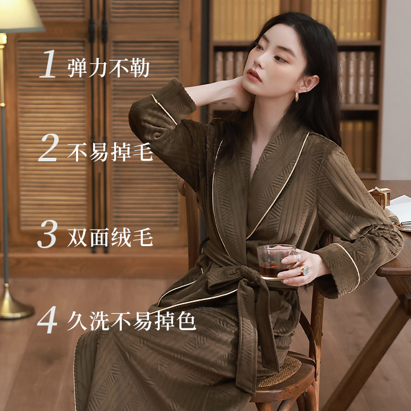 睡袍女秋冬季 高级感睡衣珊瑚绒薄绒浴袍宽松家居服 海岛绒2025新款