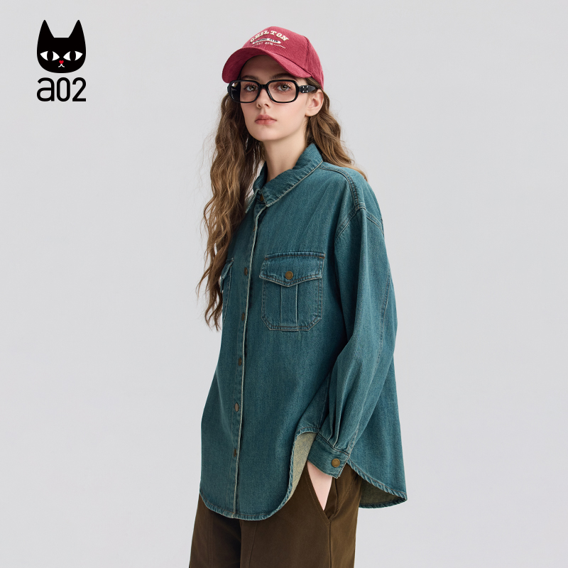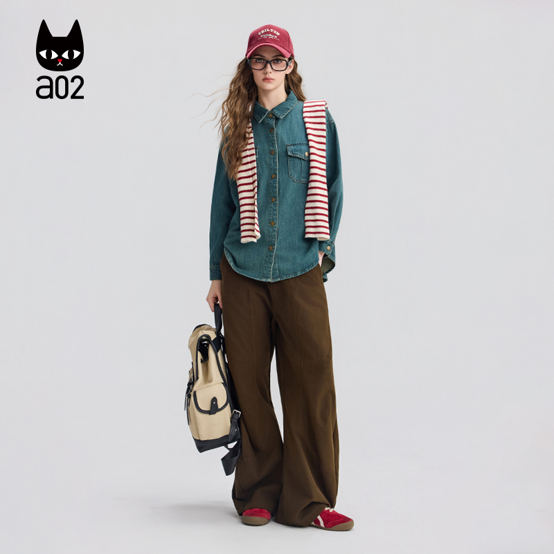 新款 飞鸟和新酒印花修身 女2025冬季 衬衫 纯棉印花上衣 灯芯绒长袖