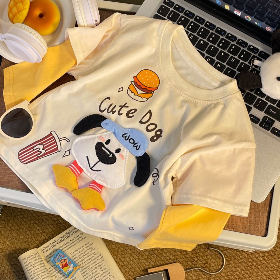立体玩偶狗狗 宽松韩版 儿童长袖 2025新款 卡通上衣洋气 T恤秋装