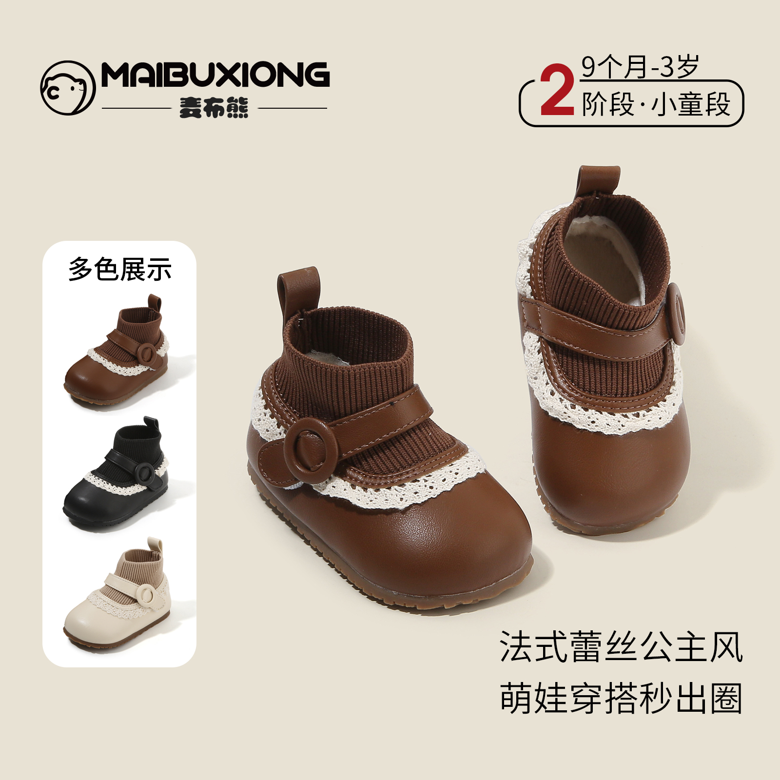 外穿平底复古软底勃肯大头一脚蹬棉鞋 秋冬季 女加绒乐福鞋 豆豆鞋 款