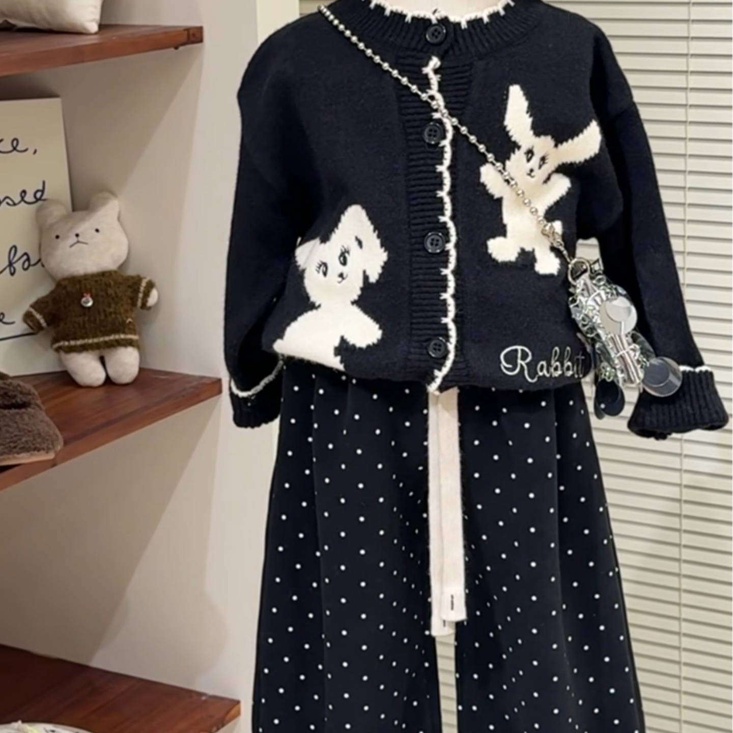 时髦儿童洋气休闲百搭毛衣卫裤 童装 新款 2025春秋季 两件套 女童套装