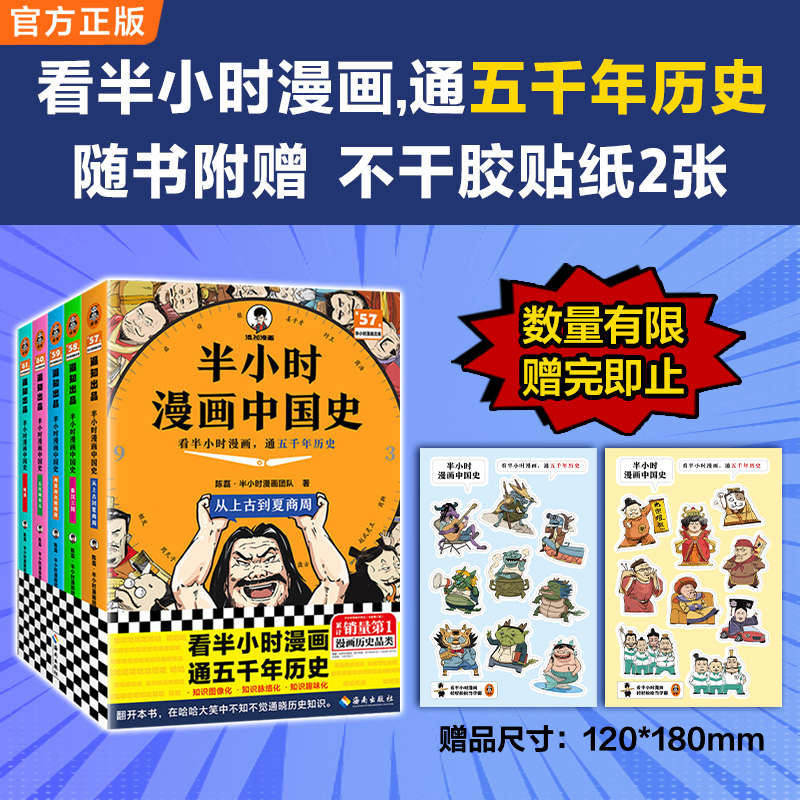 混知出品 书籍级 半小时漫画中国史 正版 9年 漫画历史品类累计 看半小时漫画通五千年历史 全五册 赠送不干胶贴纸2张 当当网