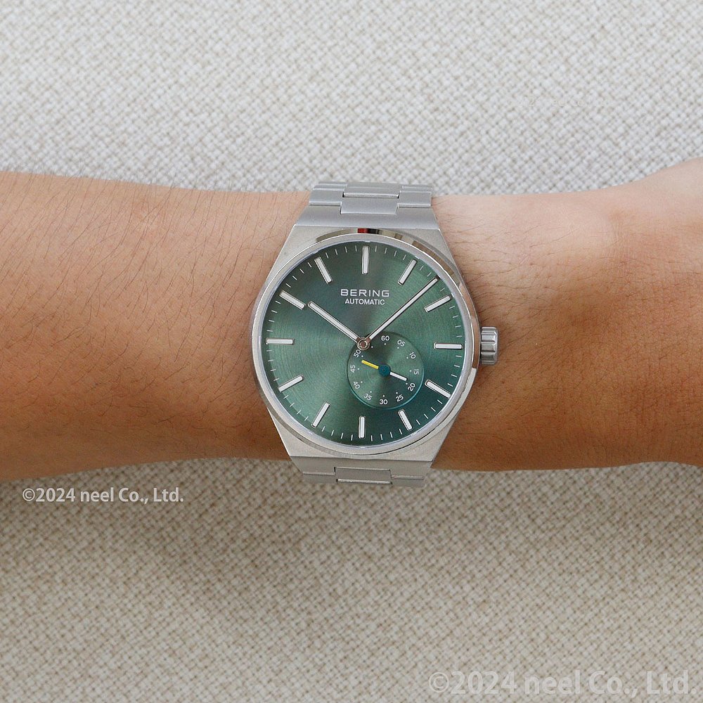 银色自动北极圈绿 日本直邮Bering 男女自动手表自动北极圈绿色