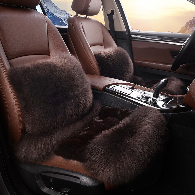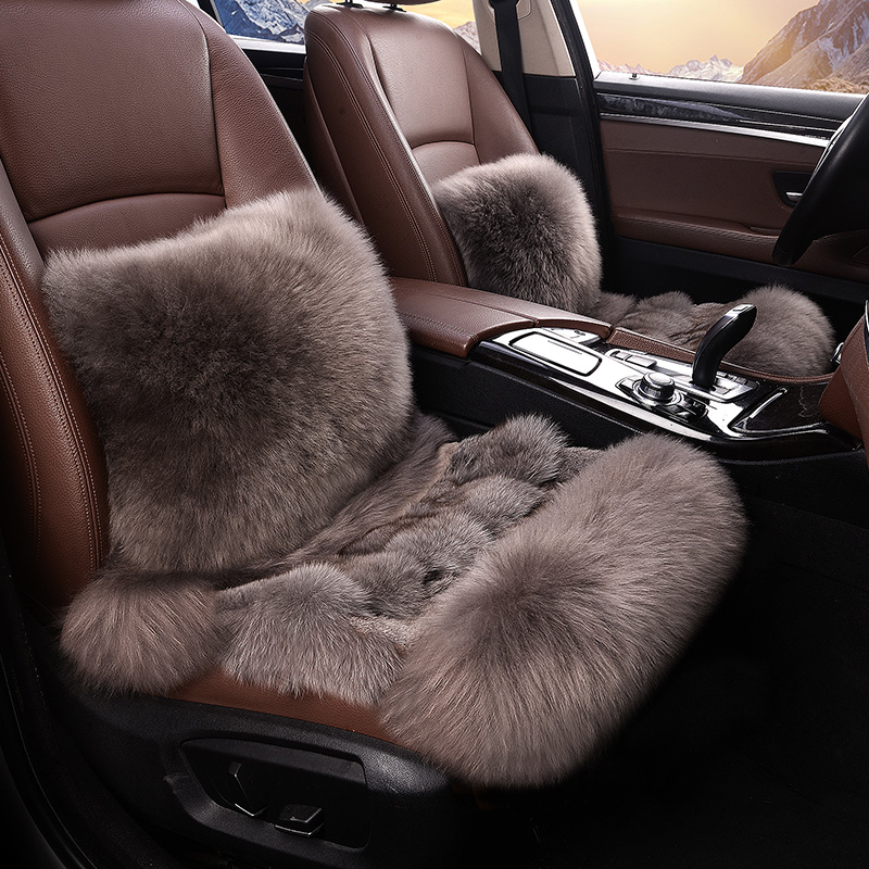 狐狸毛纯羊毛汽车坐垫三件套秋冬季 长短毛绒皮毛一体保暖座垫单片