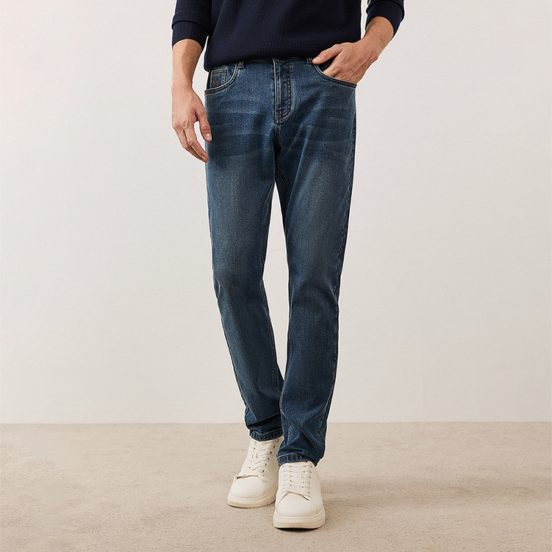 九牧王男士 专业版 25秋季 新款 男 直筒水洗透汽加绒长裤 空气牛仔裤