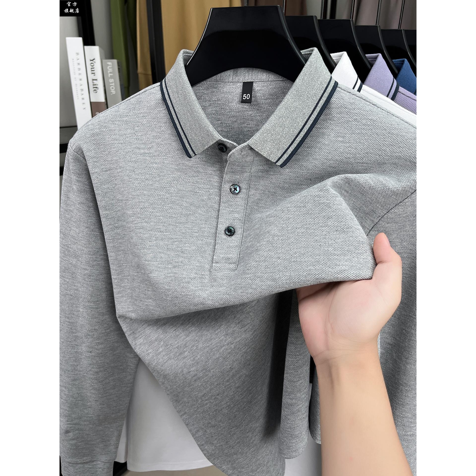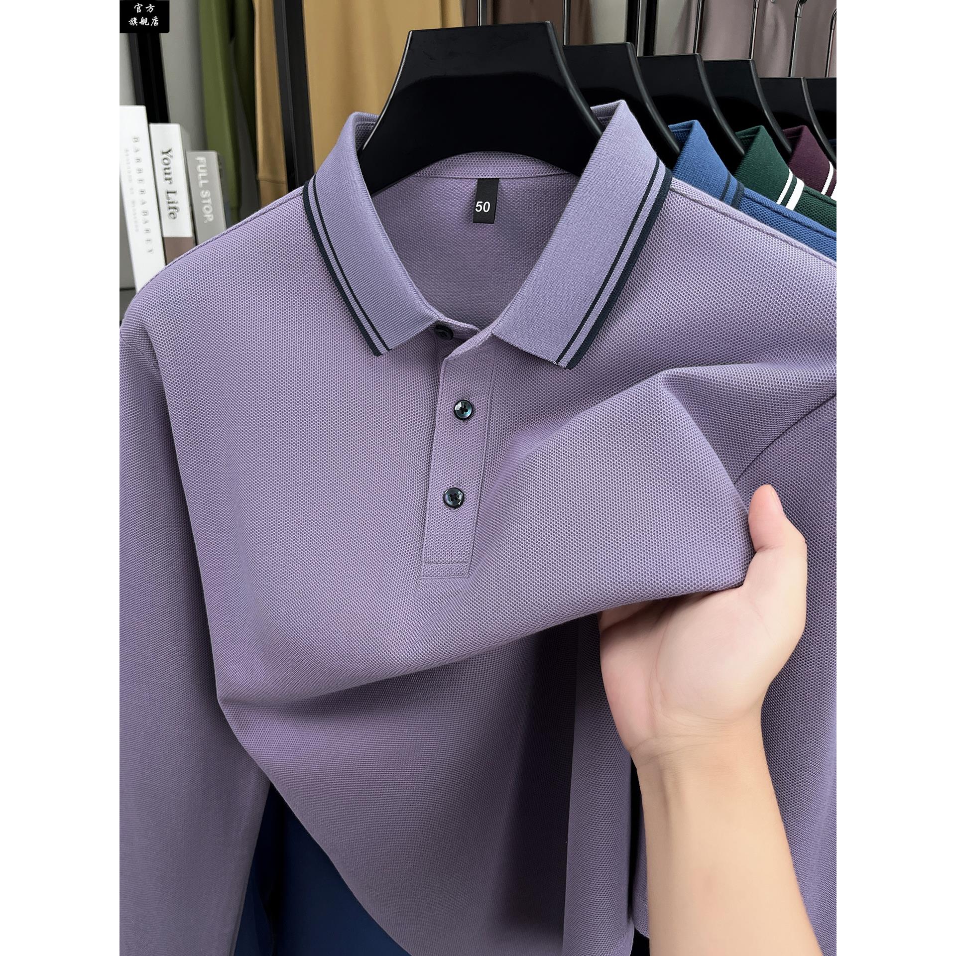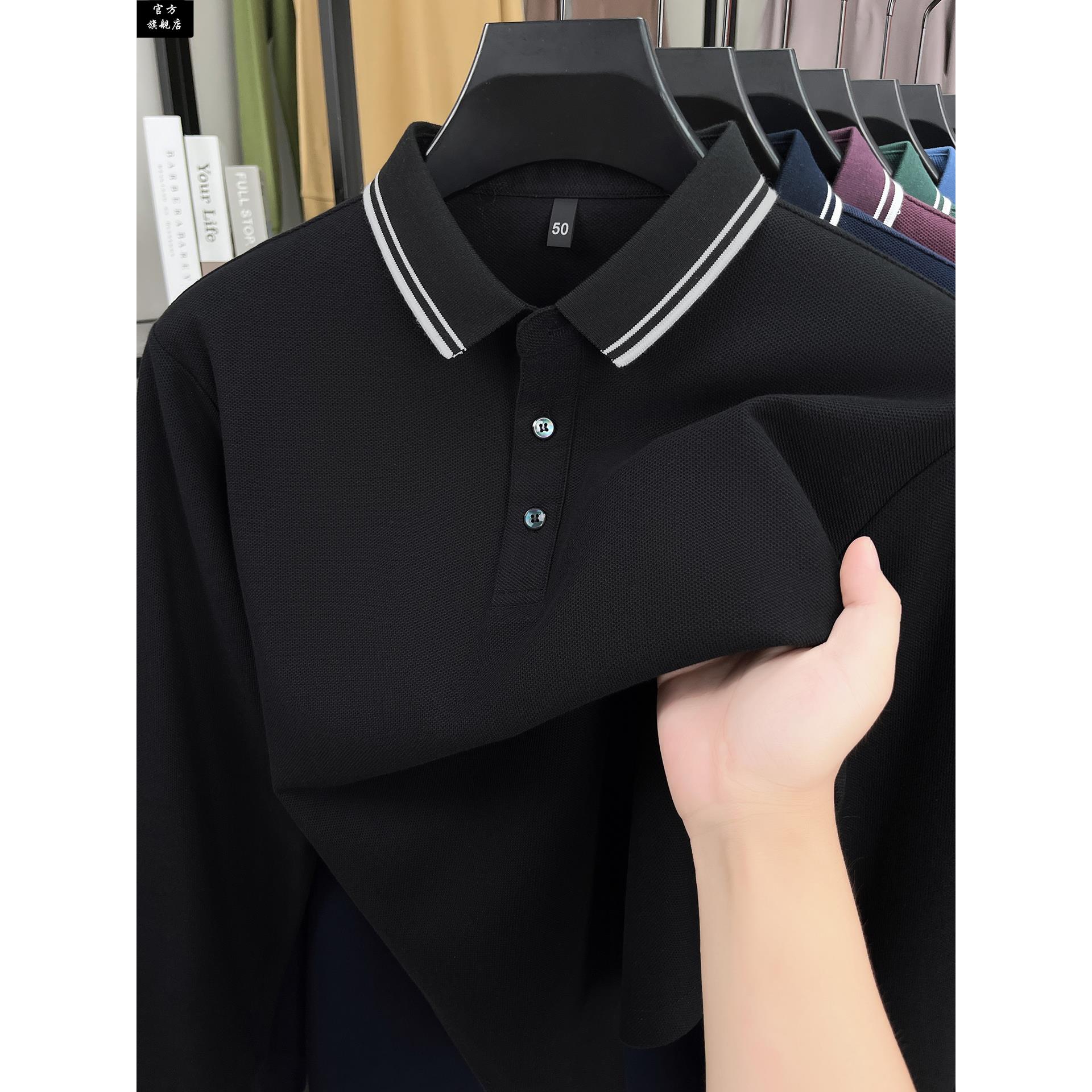 爸爸秋装 t恤2025新款 上衣中老年男装 爷爷秋季 中年男士 POLO衫 长袖
