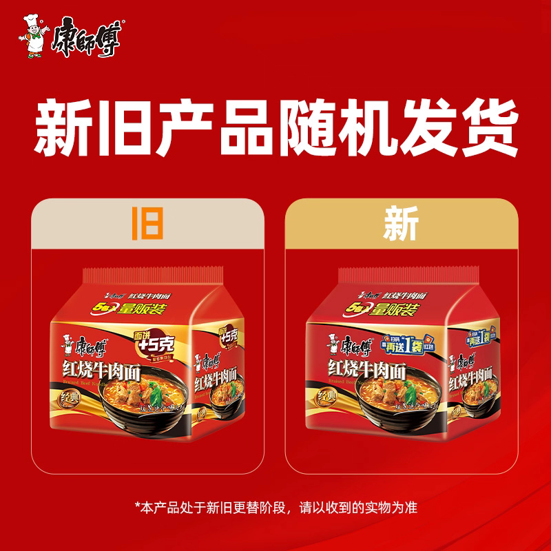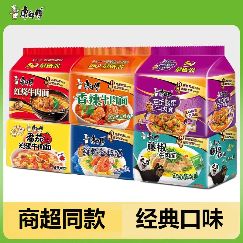 康师傅方便面五连包袋装 免煮速食品 泡面番茄鸡蛋面牛肉泡面袋装