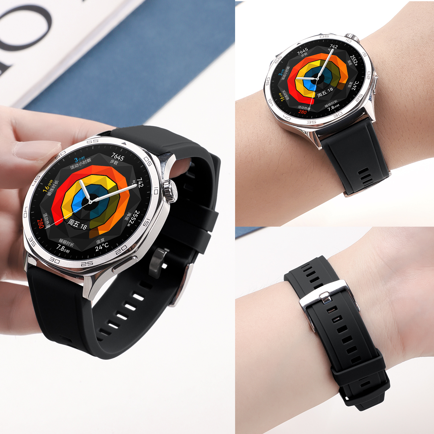 新款 适用于华为GT5手表gt6表带watch5 GT2e运动gt3pro按键款 快拆腕带按压式 配件22mm 4透气硅胶watchgt4男款