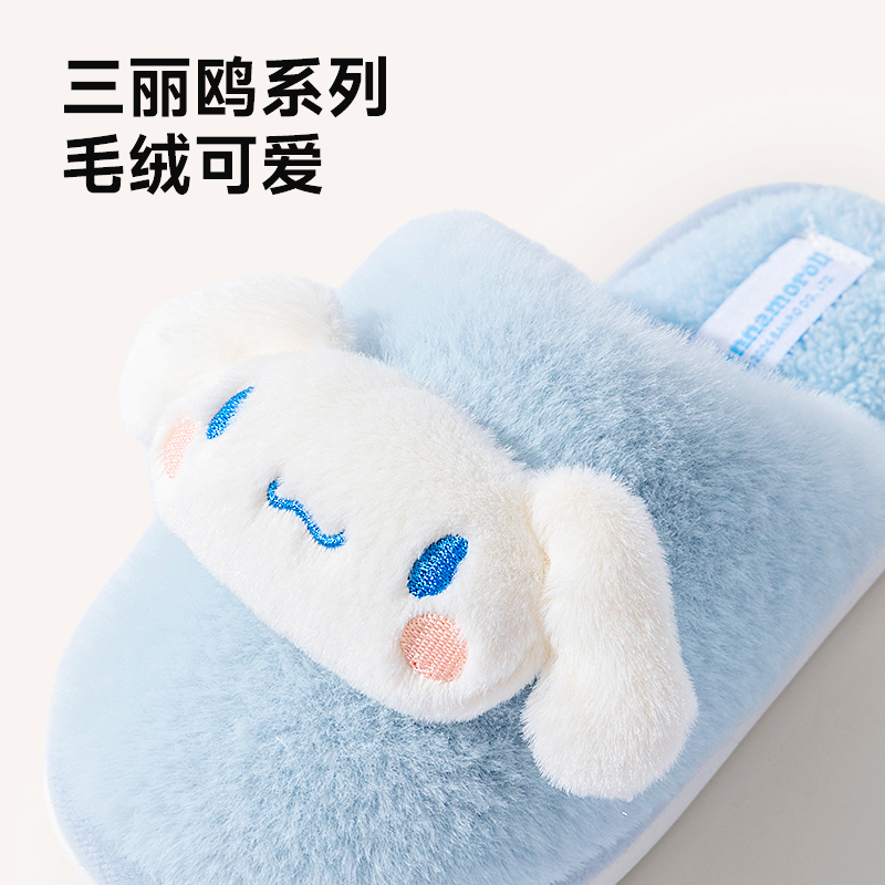 居家室内防滑三丽鸥女孩亲子毛毛拖鞋 玉桂狗儿童棉拖鞋 女童秋冬季