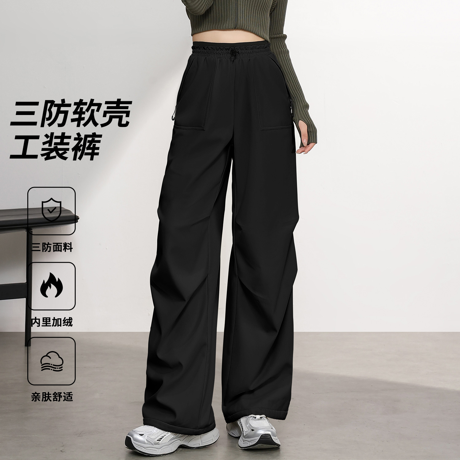 防泼水 休闲长裤 骆驼运动工装 女秋季 户外宽松直筒徒步登山裤 裤