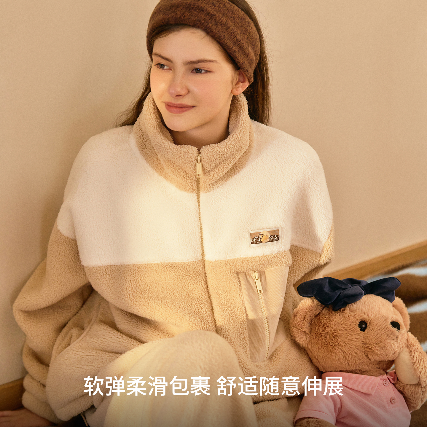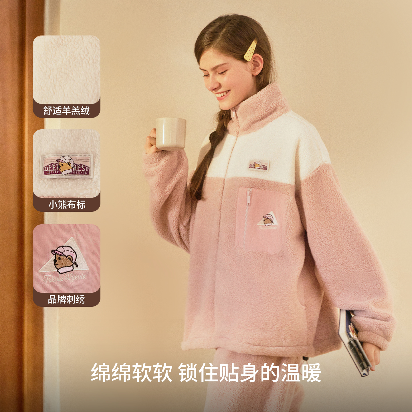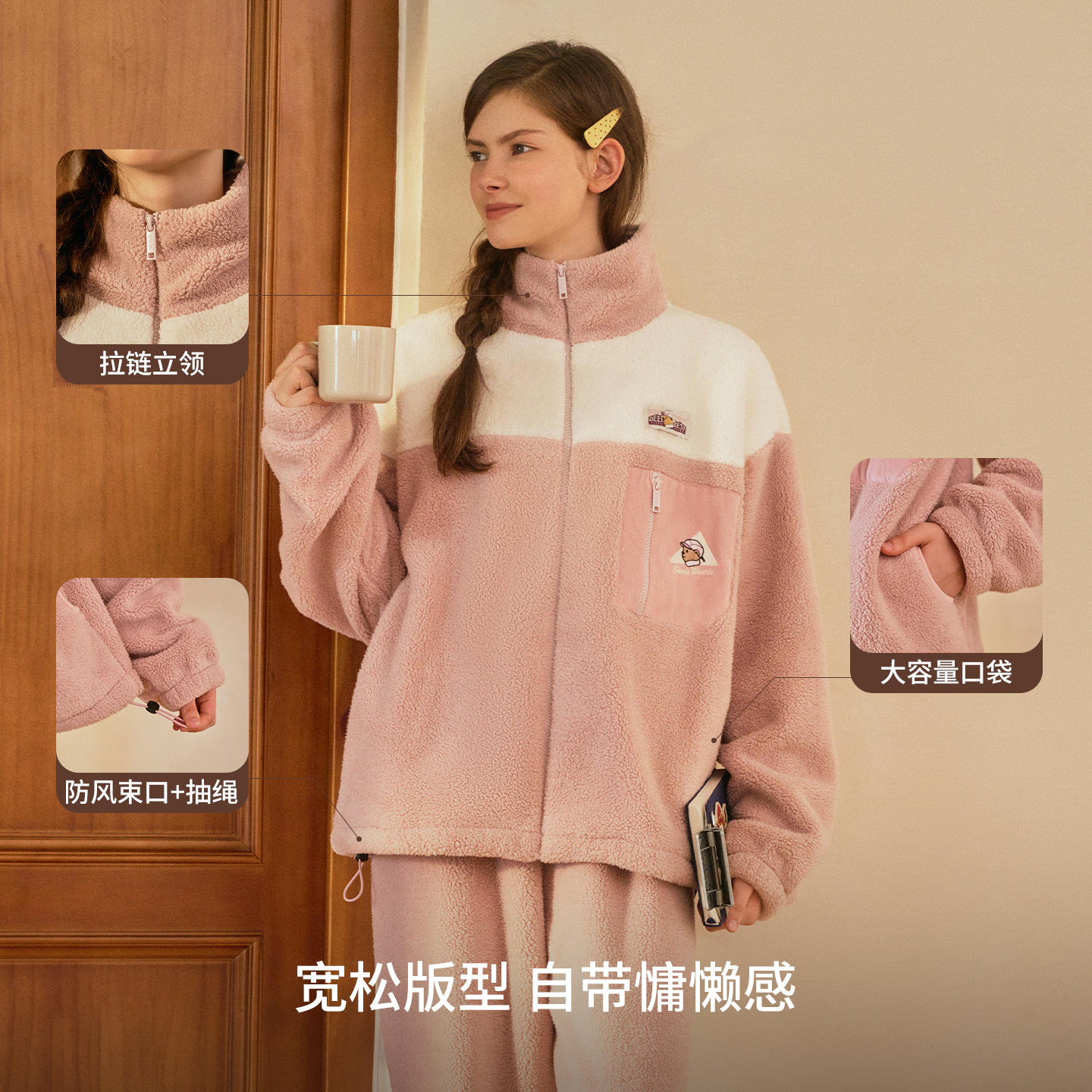 红豆珊瑚绒睡衣女羊羔绒抗静电加厚桂花绒甜美保暖外穿家居服套装