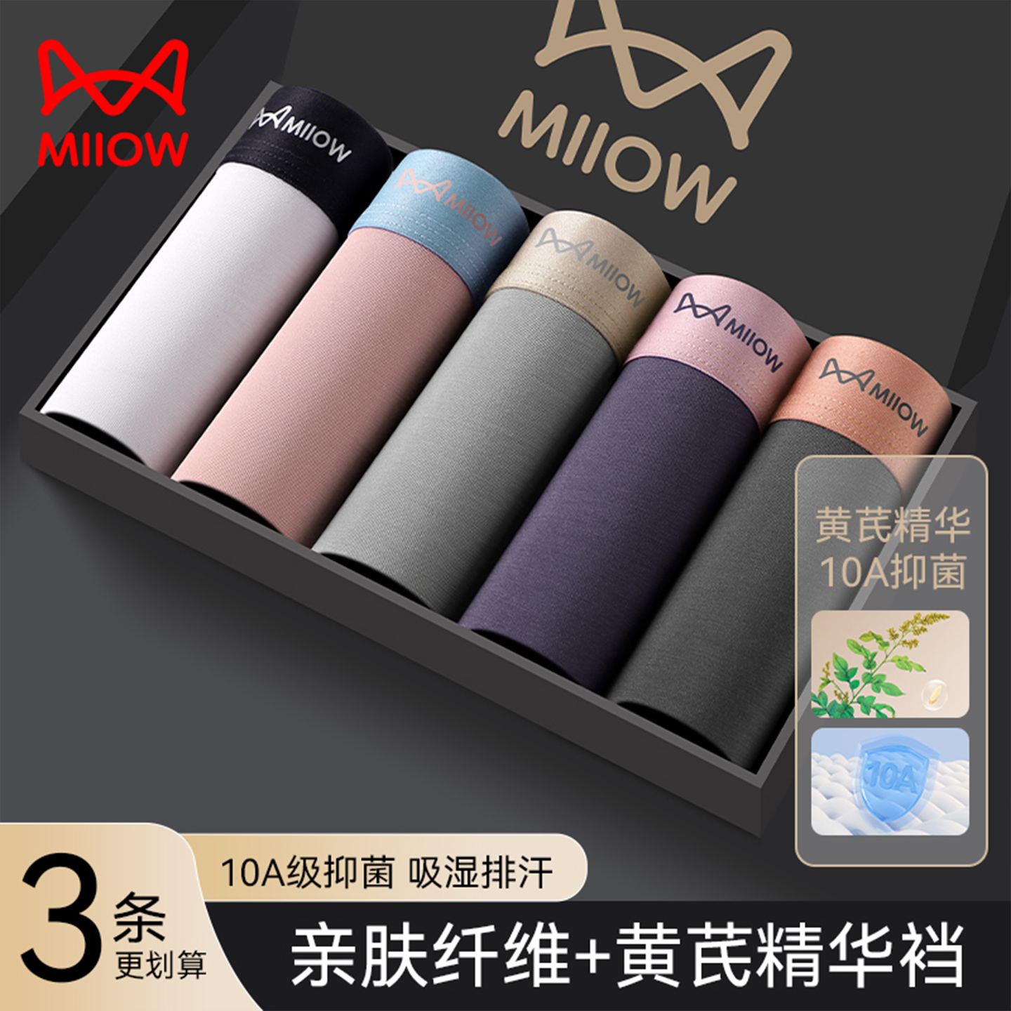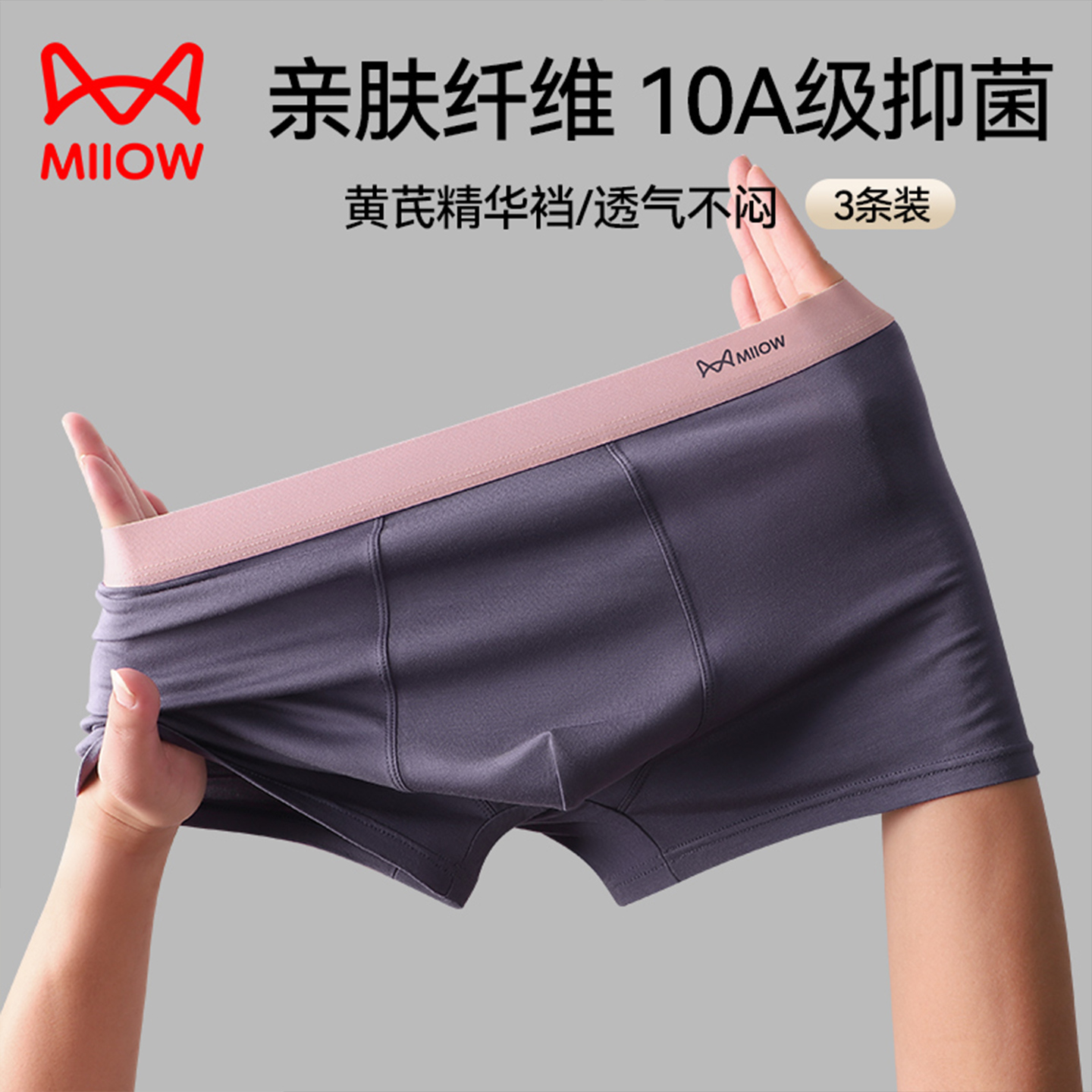 2025新款 男生纯棉全棉抑菌裆四角裤 男式 平角短裤 猫人男士 男款 内裤