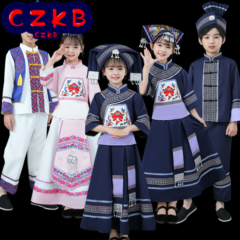 广西壮族服装 贵州苗族彝族舞蹈服 三月三少数民族儿童演出服 新款