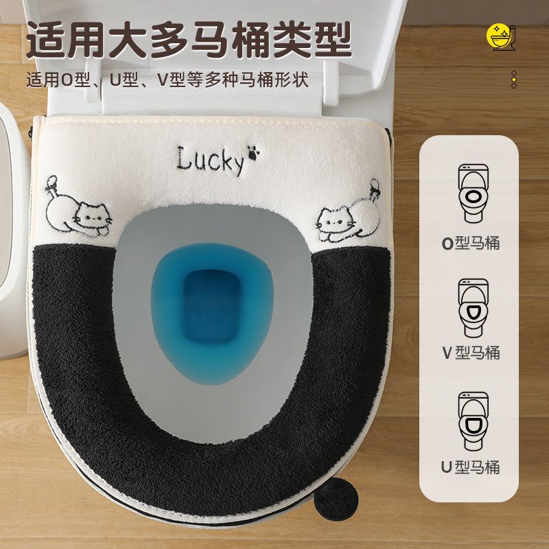 马桶坐垫家用四季 加厚马桶垫圈 通用坐便套防水拉链座便器垫子冬季