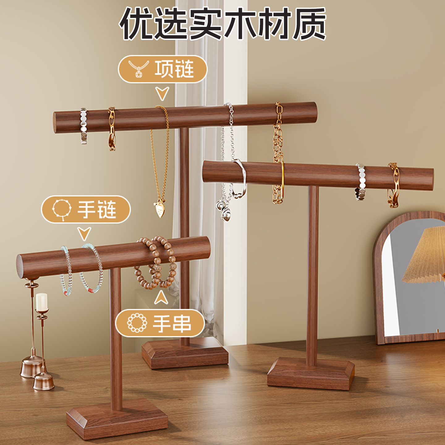 全新升级展示架实木手串展示架桌面发饰手链项链挂架耳环首饰架