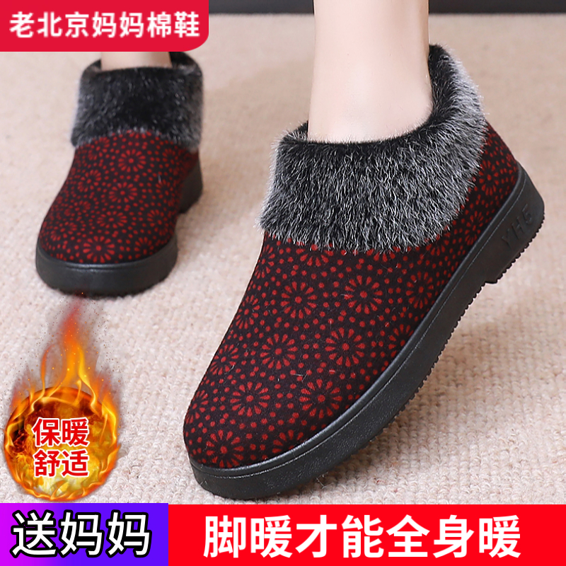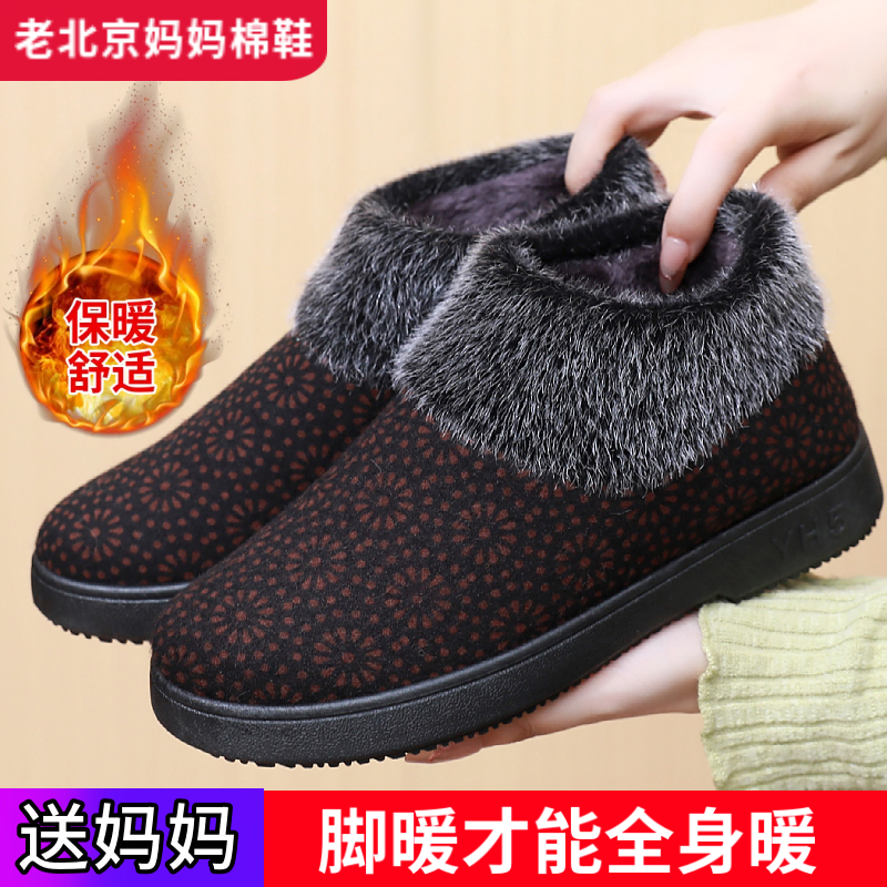 加绒加厚保暖一脚蹬软底防滑妈妈鞋 新款 雪地靴 女2024冬季 棉鞋