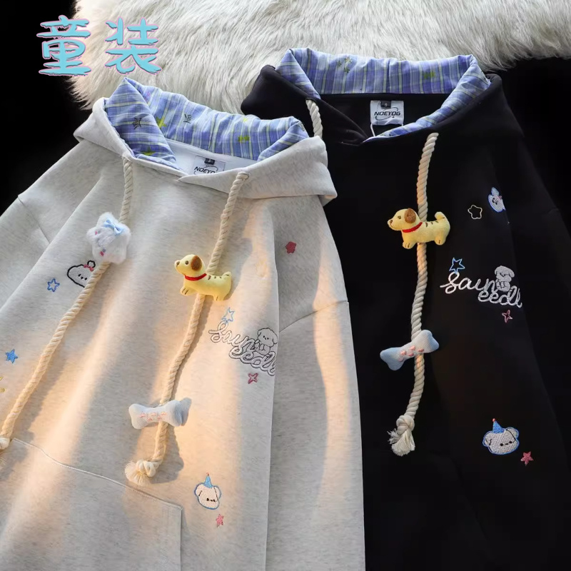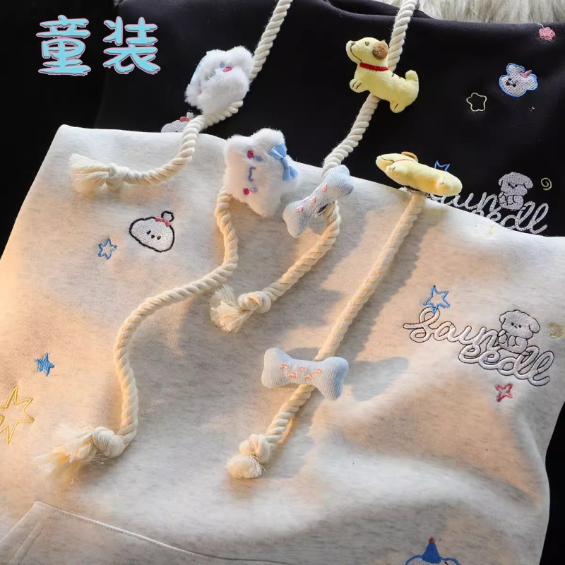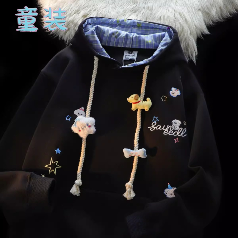 女童秋冬上衣2025新款 潮 中大童洋气连帽卫衣儿童休闲卡通加绒长袖