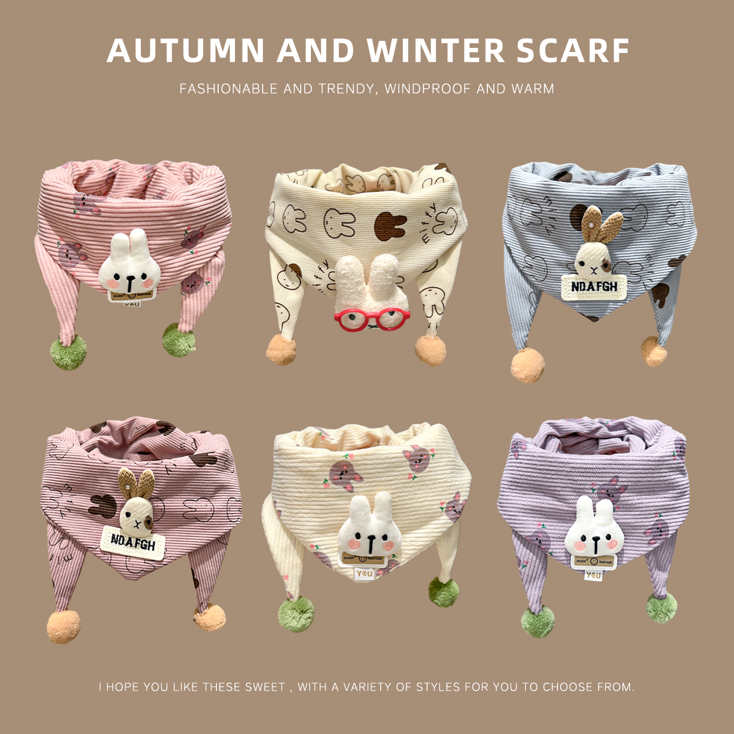 婴儿围巾秋冬新款 女宝宝保暖防风围脖 小月龄女童兔子三角巾春秋季