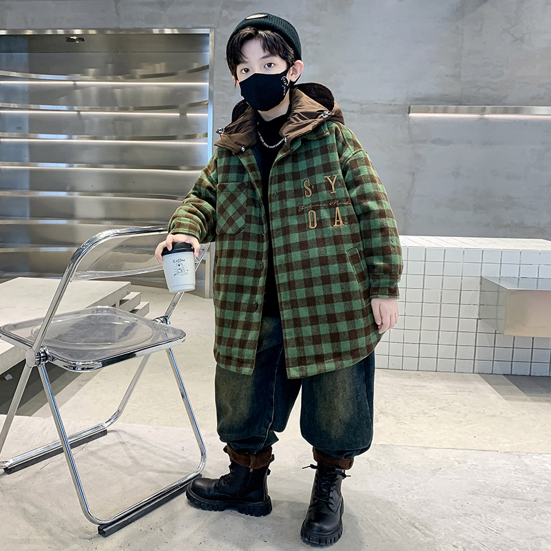 儿童格子衬衫 2025新款 大童男孩加厚上衣潮 夹棉外套秋冬款 男童冬装