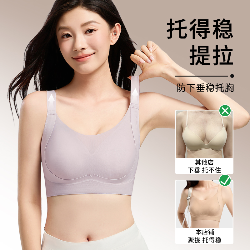 润微提拉内衣女大胸显小防下垂粉底液文胸 k姐双11 抢现货