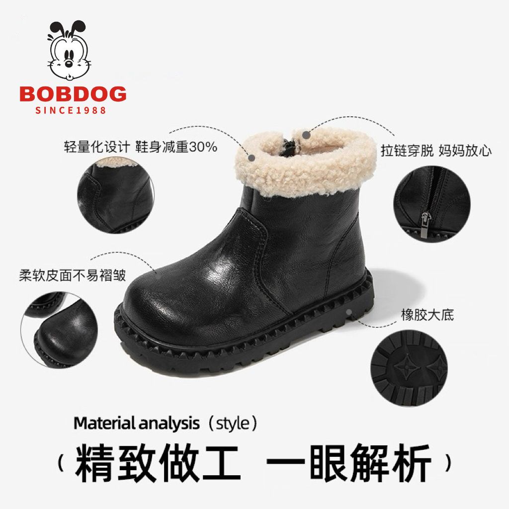 皮毛一体面包鞋 回力雪地靴男款 加绒加厚皮面保暖鞋 东北棉鞋 男 冬季