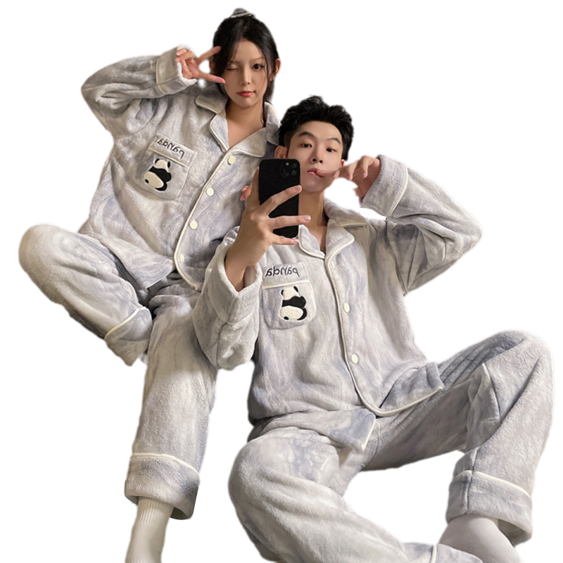 半边绒可爱加厚冬男士 有棵树睡衣女款 情侣家居服套装 成毅同款