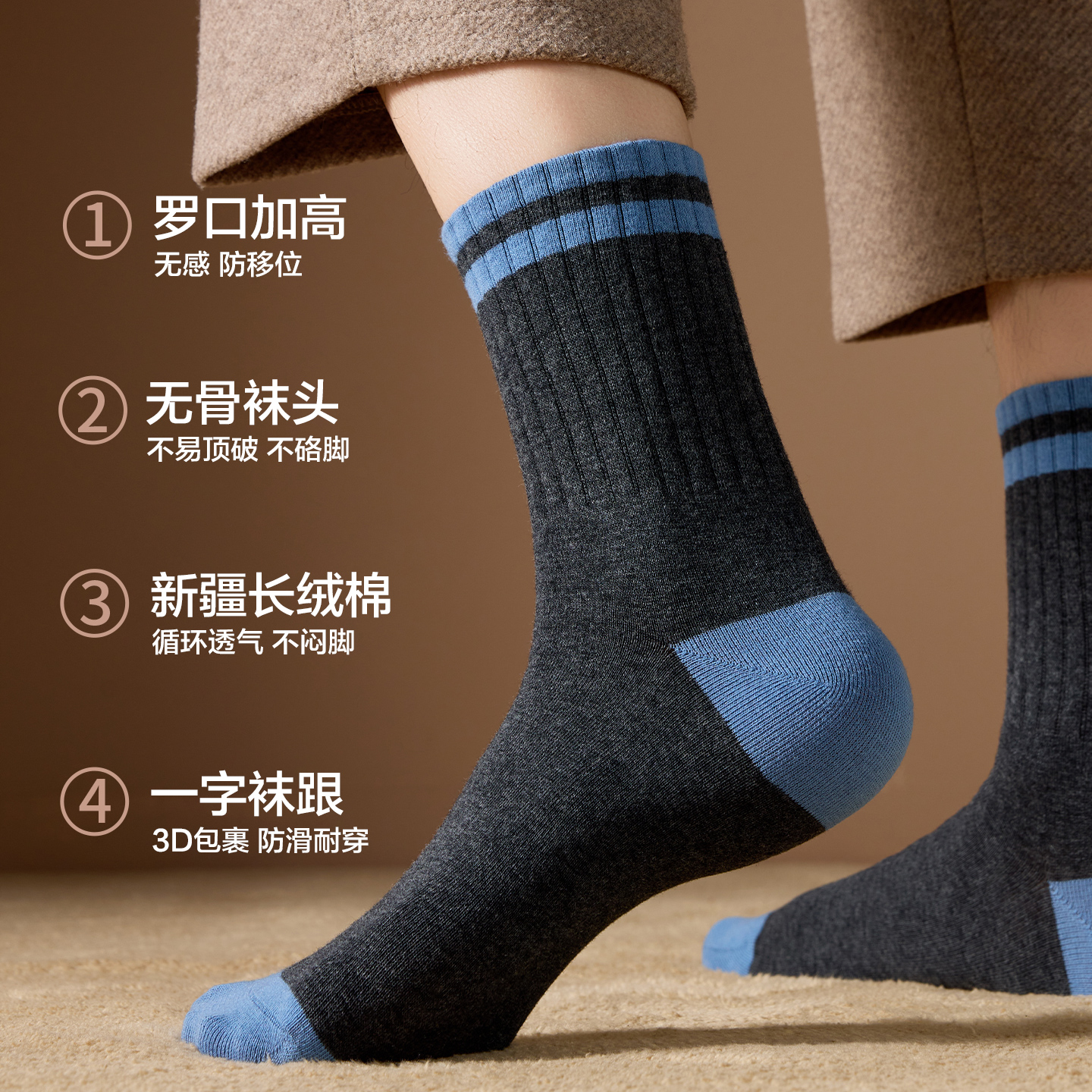 袜子男款 秋冬中筒袜抗菌防臭棉袜袜运动吸汗7A抗菌商务袜 纯棉男士
