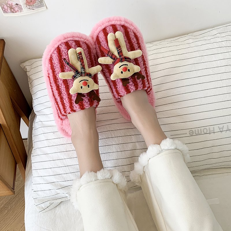 清新可爱雪莉玫棉拖鞋 少女居家格子包头拖防滑百搭外穿毛毛拖 冬季