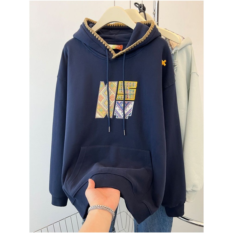 外套潮2 复古复古刺绣字母连帽卫衣男女春秋情侣装 超大码 300斤美式