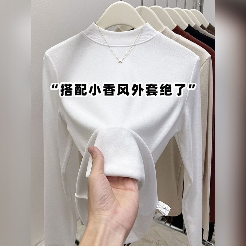 上衣t恤 百搭显瘦气质大码 纯色半高领基础内搭打底衫 女秋冬新款