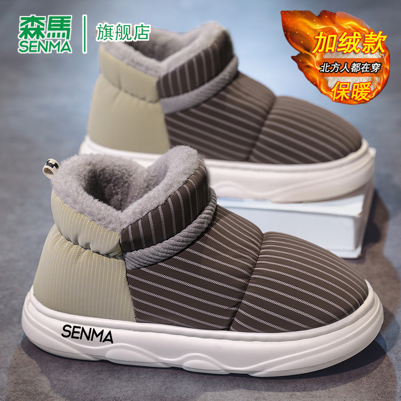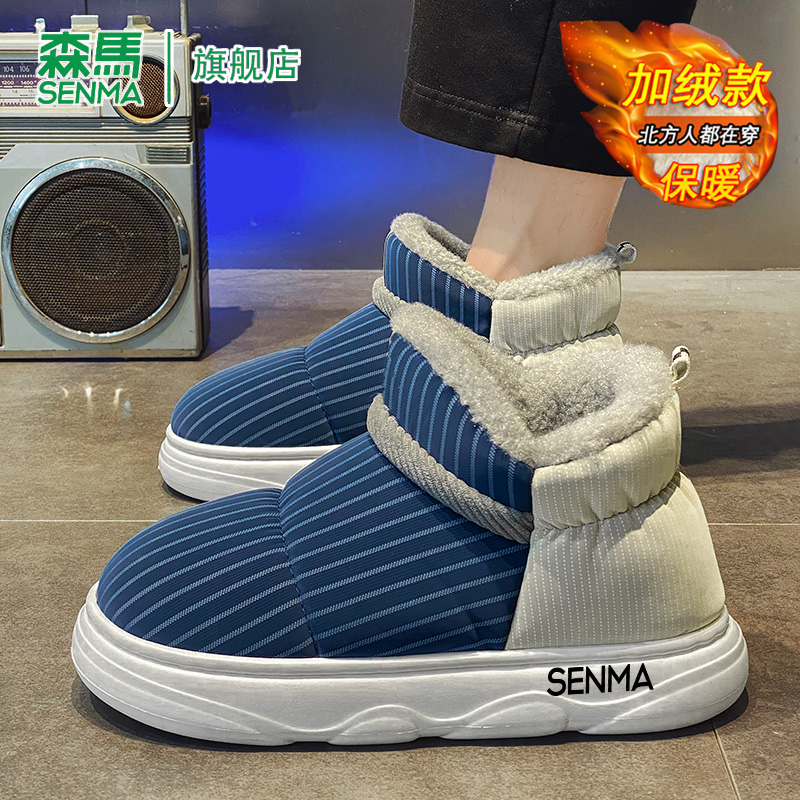 家居情侣一对保暖加绒加厚抗寒面包棉鞋 冬季 女 雪地靴男士 森马时尚