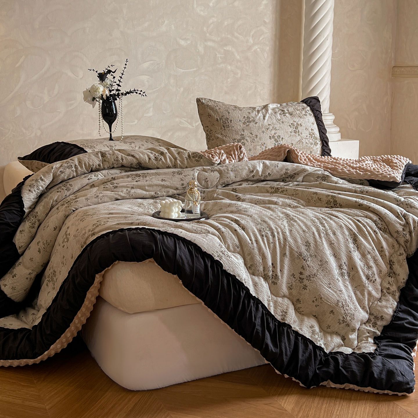 双面磨毛被纯色拼色亲肤透气ins风裸睡化纤被子200x2301.8m床